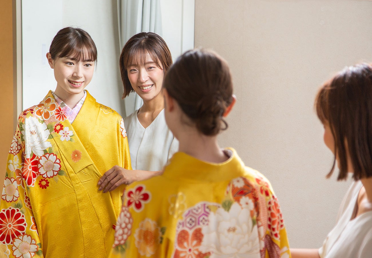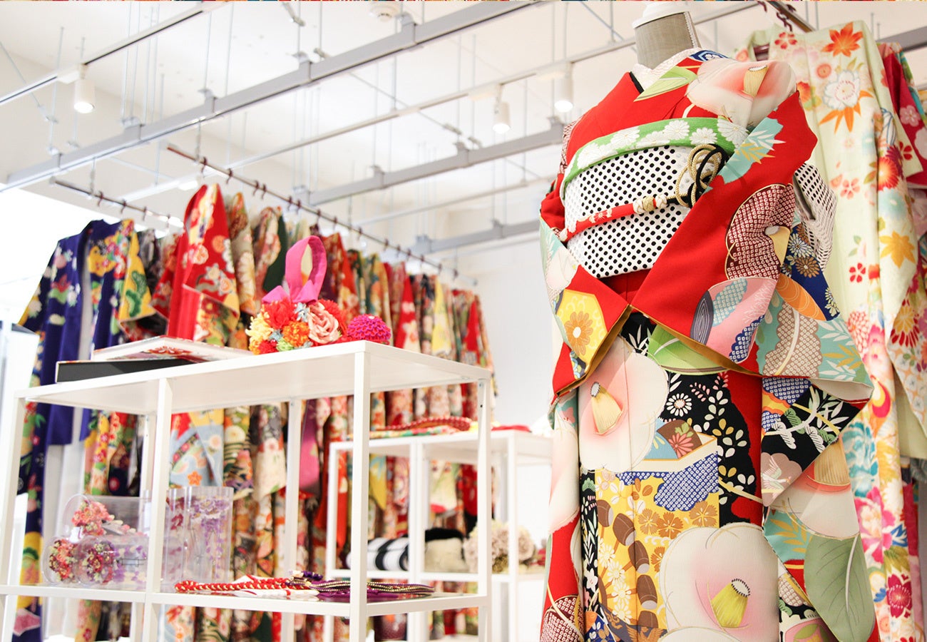 京都から取り寄せた新作振袖を自分サイズに仕立てるオーダーレンタルも用意。ご家族と一緒に、とっておきの一着を見つけよう。