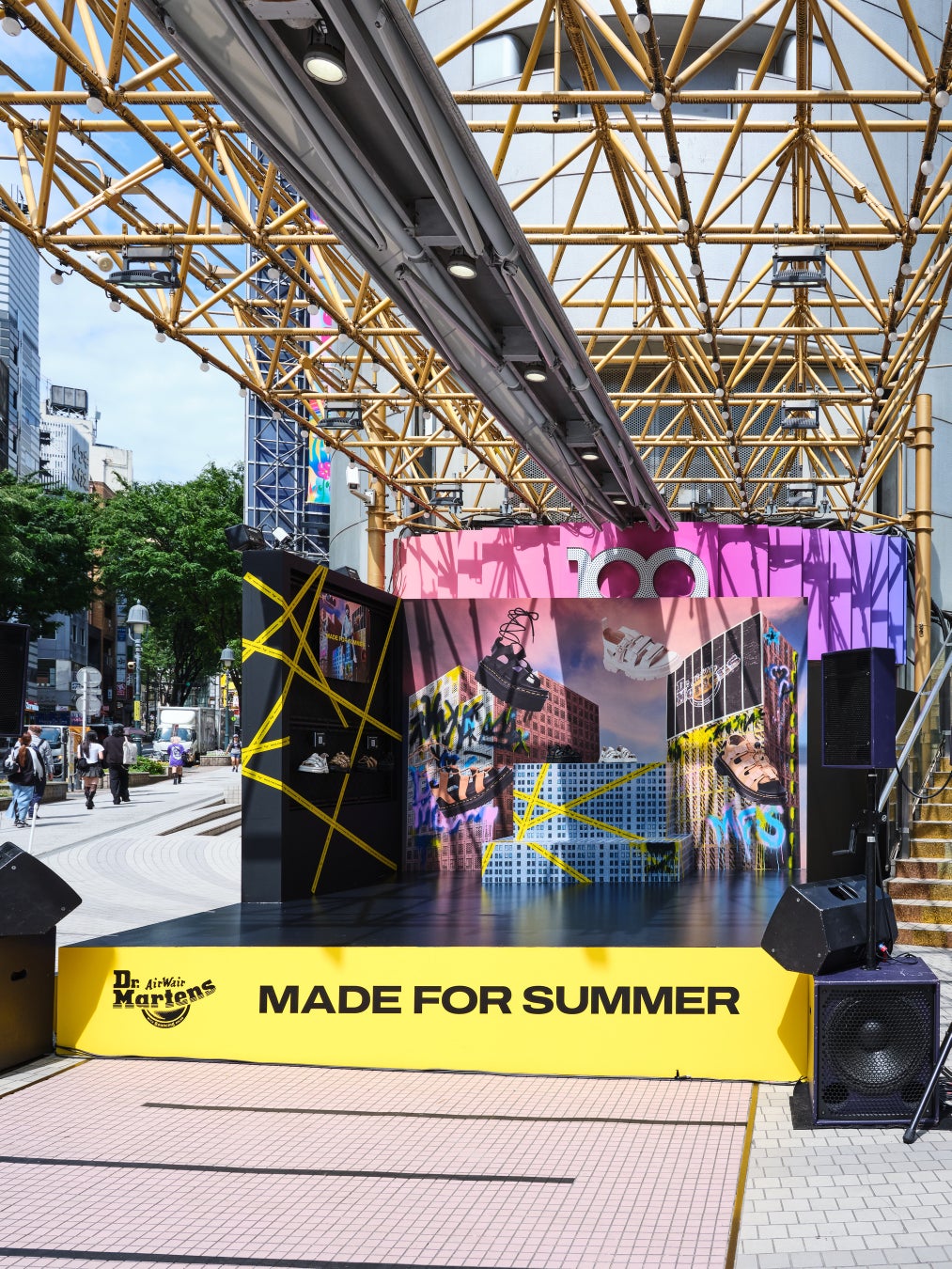 2024 年 5 月 25 日(土) ‒ ドクターマーチンは、サマーサンダルキャンペーン「MADE FOR SUMMER」のクライマックスに、渋谷 109 エントランススペースで豪華なスペシャルイベントを開催しました。今回のキャンペーンキャラクターを務めたアーティスト「ano」が最新のサマーサンダルを着用して登場し、ドクターマーチンのキャンペーンに出演することの想いや、自信の強さ、表現を語りました。また、ラッパーの KID FRESINO が、この日限りのスペシャルミニライブを敢行。サブカルチャーを肌で感じさせる、サプライズなイベントは渋谷の街を盛り上げました。