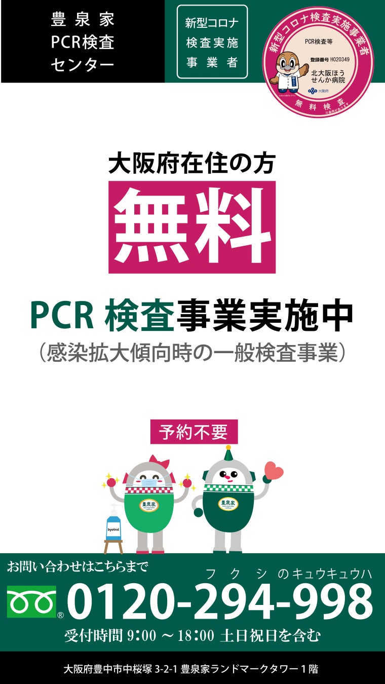 【大阪府豊中市 無料PCR検査】新型コロナ検査実施事業者として、豊泉家グループで無料PCR検査を実施しております。【実施場所:大阪府豊中市中桜塚3-2-1】