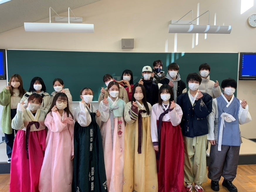 2023年1月30日(月)、島根県立大学国際関係学部の学生(国際関係コース)が韓国の民族衣装「韓服(한복)」を体験しました。