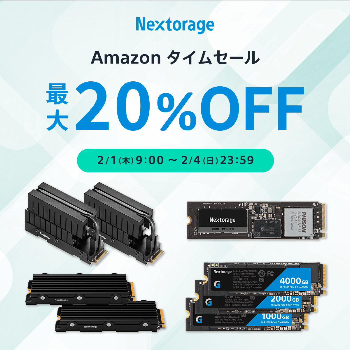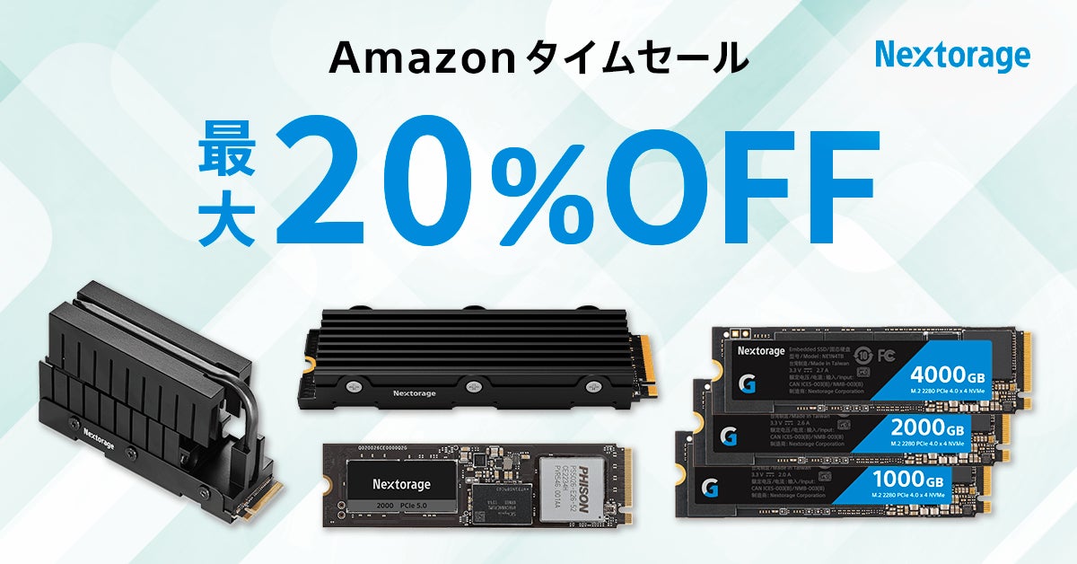 [Nextorageセール情報] Amazon タイムセール祭り 参加のお知らせ Gen5を含むSSD製品を最大20%OFFで販売