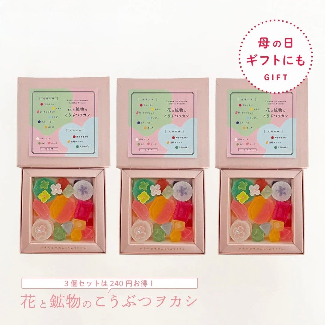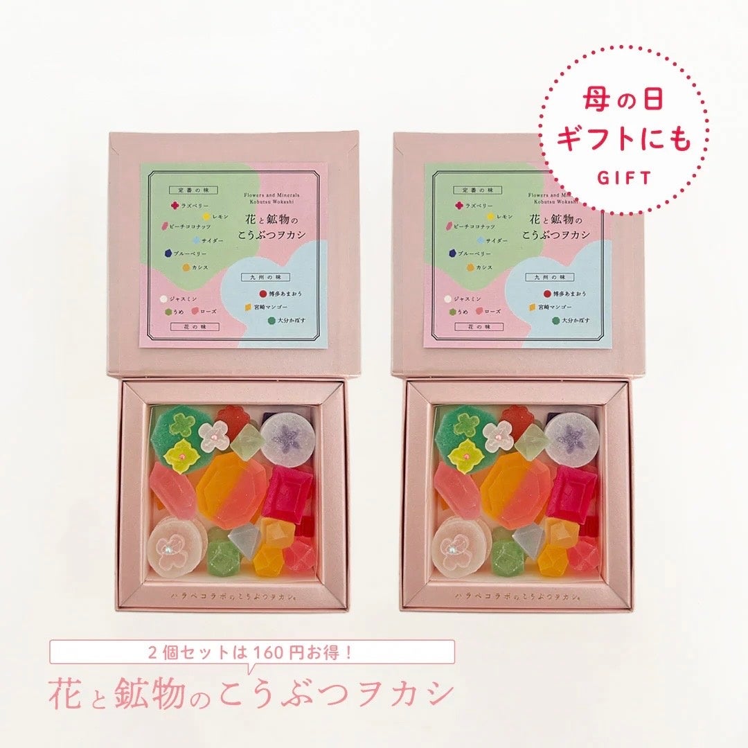 「ArtなFoodであそぶ」をテーマにプロダクトを展開するメルティングポットハラペコラボ株式会社(所在地:福岡県福岡市、以下 ハラペコラボ)から、代表作の鉱物みたいな琥珀糖「こうぶつヲカシ」の母の日ギフト限定ボックスが期間限定で登場。公式オンラインストア、で2025年4月28日より販売を開始、福岡店、チューズベースシブヤでも順次販売を開始いたします。