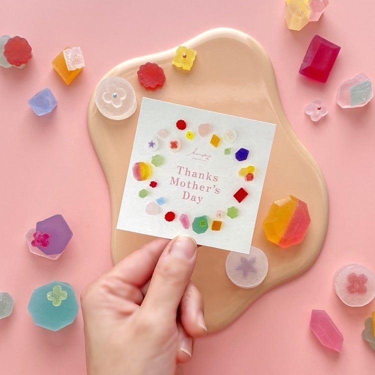 ひとつひとつ手作業によって切り出される宝石や鉱物みたいな琥珀糖【こうぶつヲカシ】に、2025年の母の日限定バージョン「花と鉱物のこうぶつヲカシ」が登場!