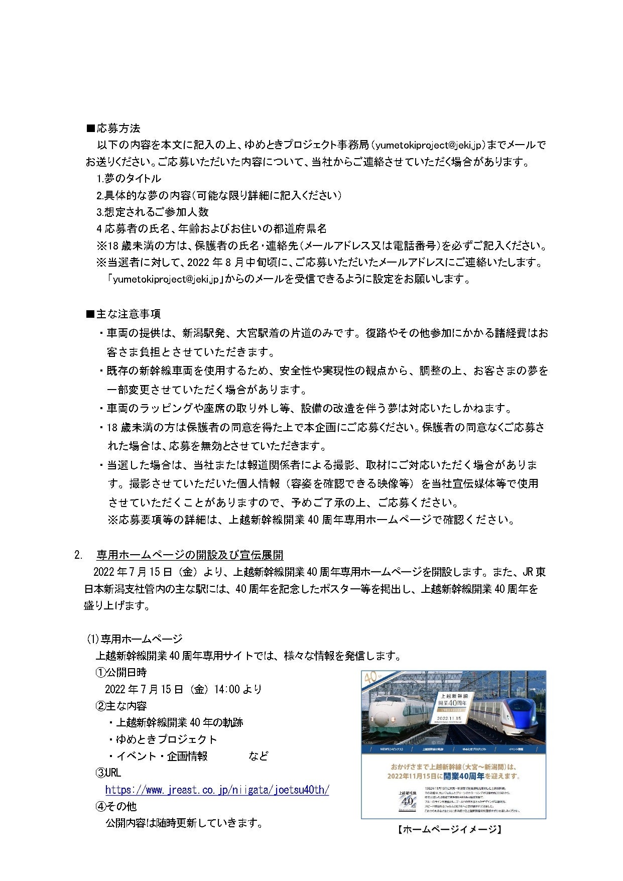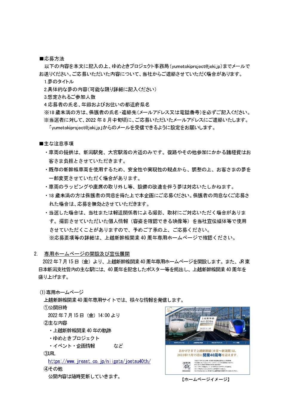 上越新幹線開業40周年専用ホームページ(https://www.jreast.co.jp/niigata/joetsu40th/)