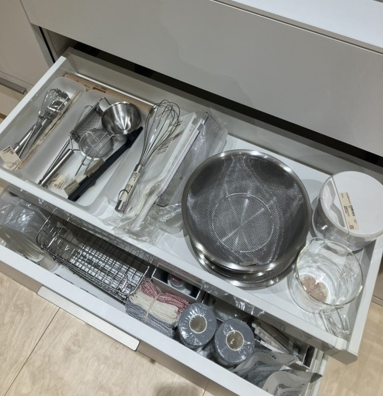 また、展示されているキッチンの引き出しや、棚の中で無印良品の商品を使用した収納を再現。食器やカトラリー類の収納方法の参考になったと、ご好評の声をいただきました。