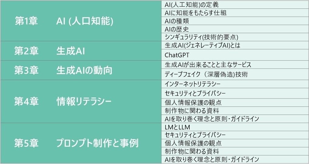 国内有数の生成AIプラットフォームである生成AI活用普及協会(GUGA)が提供する資格試験「生成AIパスポート」のシラバスに基づいた研修動画です。AIを活用したコンテンツ生成の具体的な方法や事例に加え、企業のコンプライアンスに関わる個人情報保護、著作権侵害、商用利用可否といった注意点などを学ぶことができ、生成AIを安全に活用するための「AIリテラシー」の向上が期待できます。