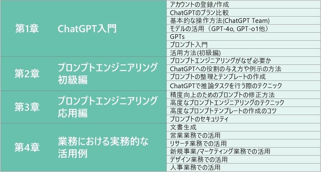 全従業員のベースとなる生成AIの実践的なスキルを身に付けることができます。メールやプレゼン資料、データの基本的な分析やサムネイル作成など、多種多様な職種の業務効率化や問題解決に役立てることができます。