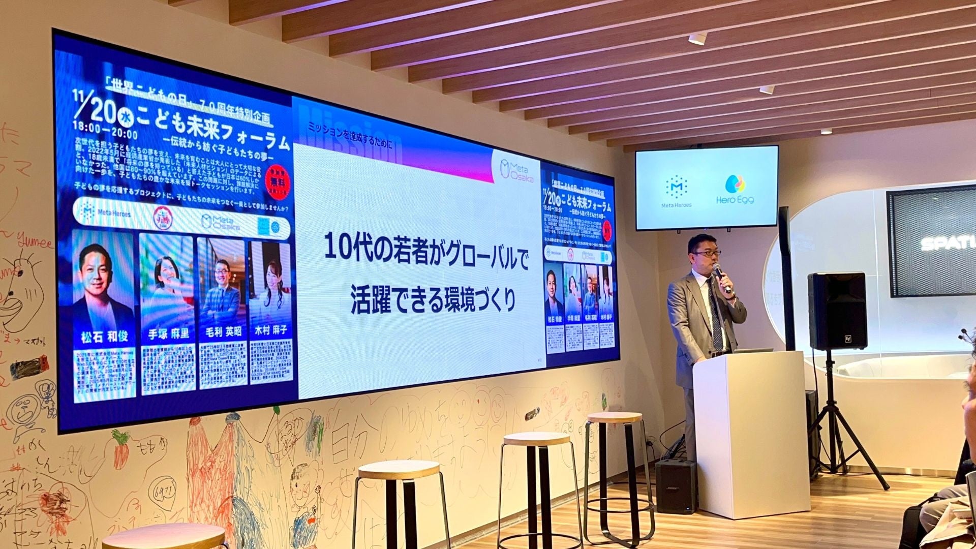 2024年11月20日(水)、世界子どもの日70周年を記念した「こども未来フォーラム」がなんばパークスのeスタジアムなんば本店Hero Eggにて開催されました。本フォーラムは、子どもたちの未来を築くための意義ある対話と共有を目的に、株式会社Meta Osakaが主催となり、各分野で活躍する著名人が登壇し、講演に耳を傾けました。