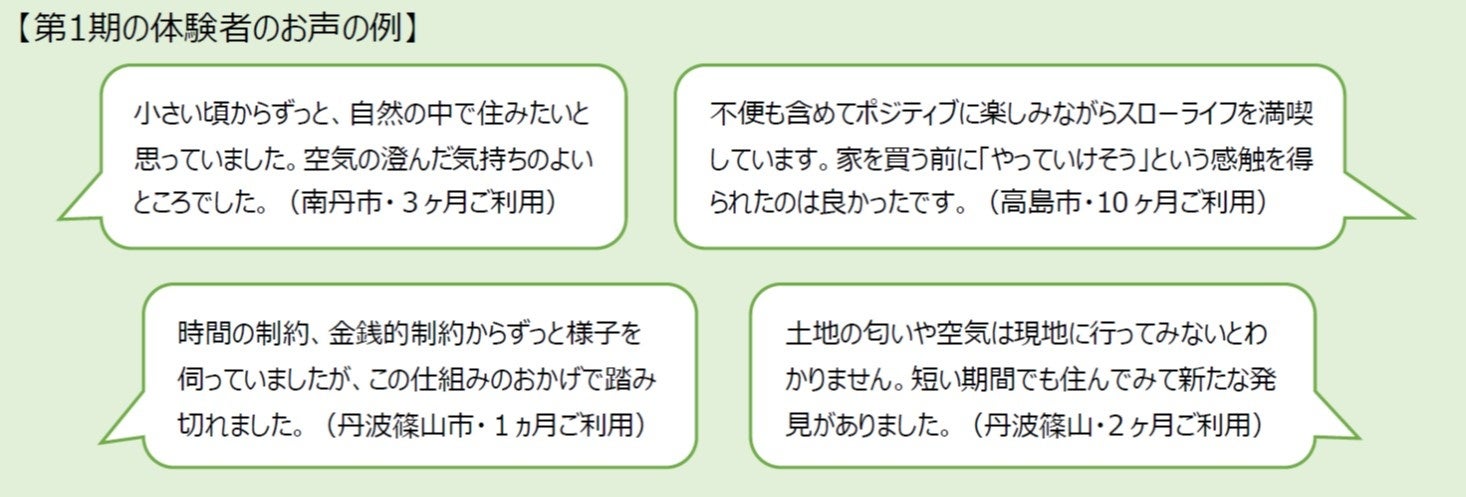 (2) 4月19日(火)18:30~20:00には、昨年度のおためし暮らし体験者のお声も聴ける、オンライン説明会を予定しております。応募を悩まれている方や、各地域の特色を知りたい方、担当者や体験者へ直接ご質問をしてみたい方は、下記より開催概要をご確認の上、お申し込みください。