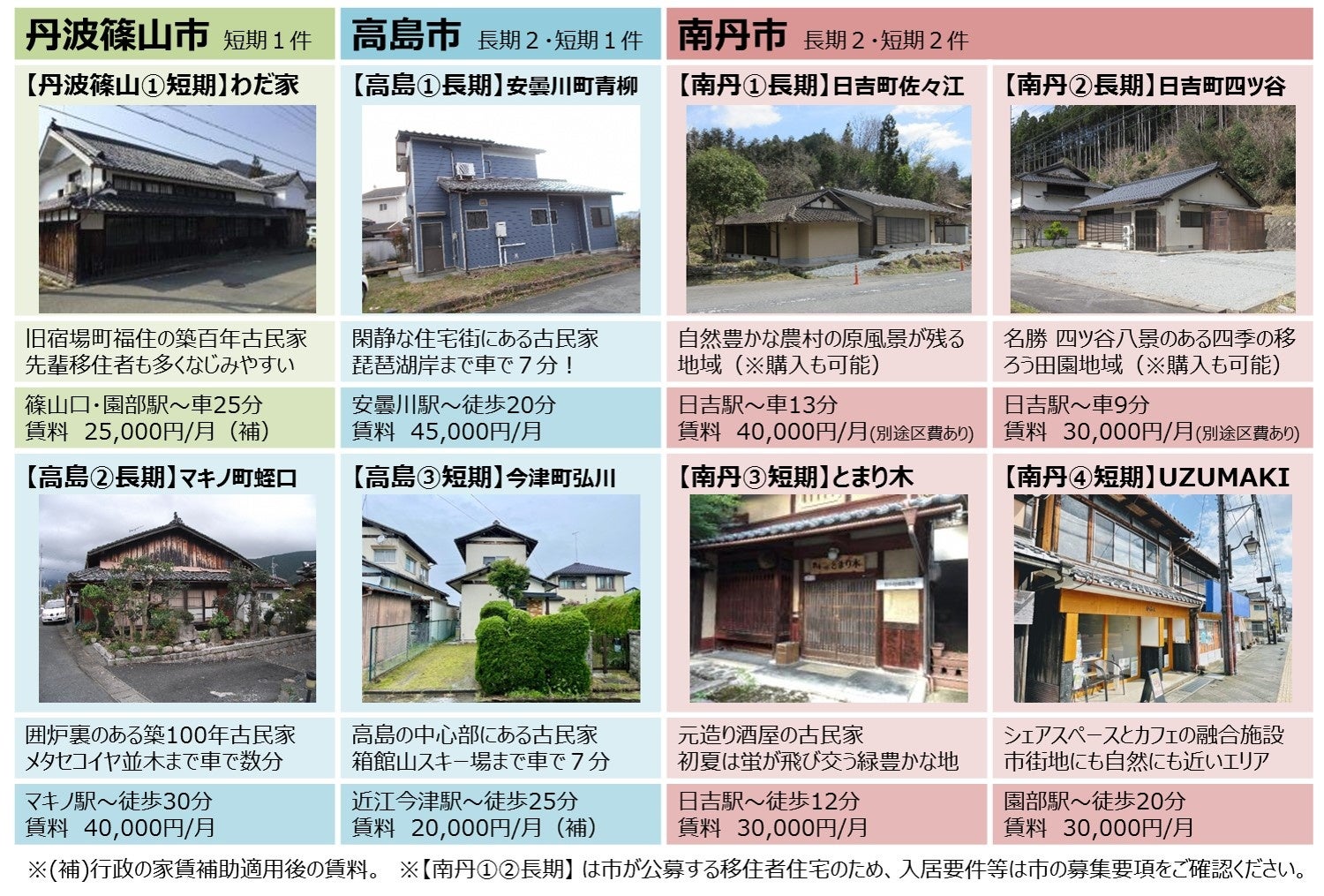 (*2 短期物件<南丹④>は単身者も募集対象となります。)