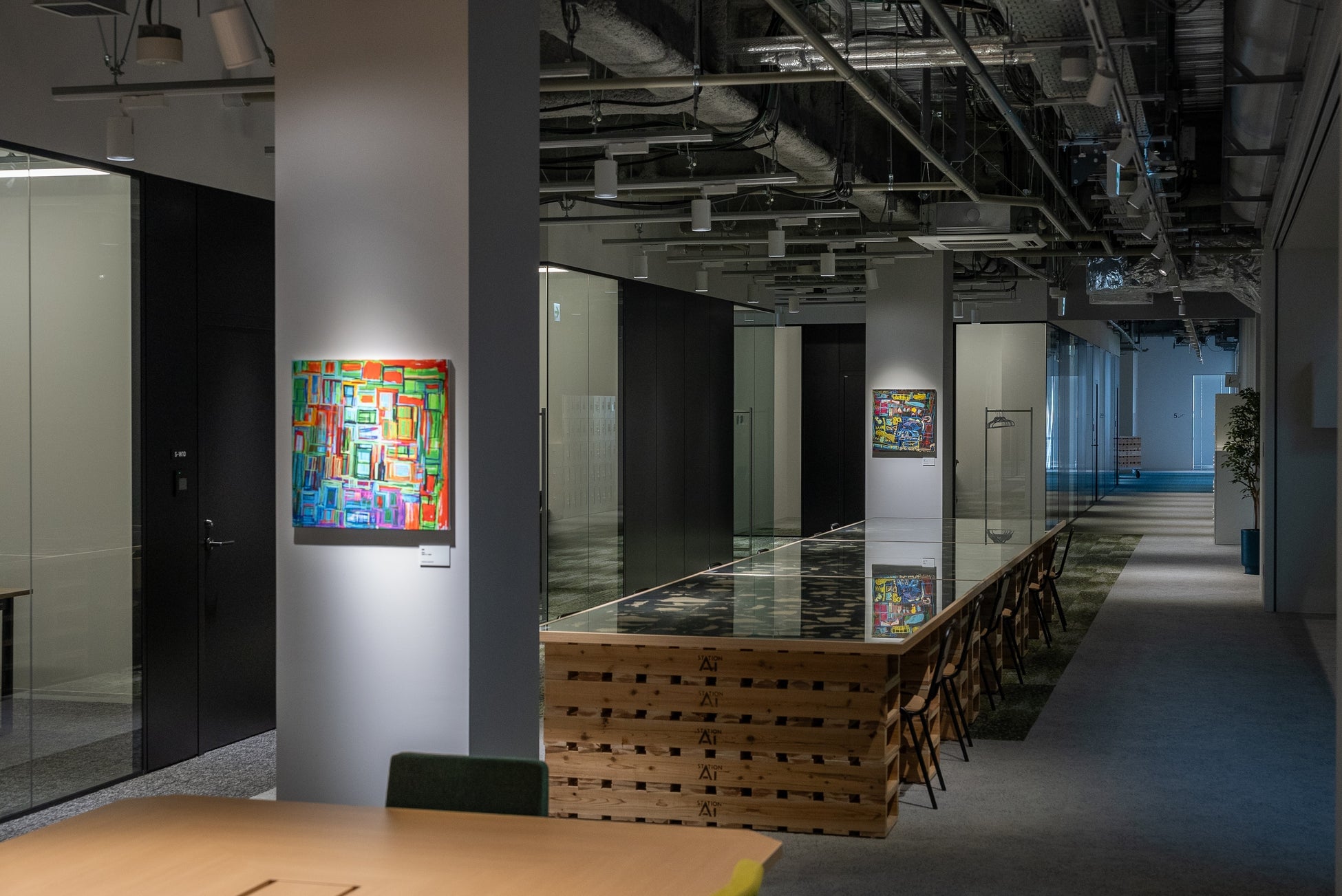 「STATION Ai」にアート作品を設置することで、「STATION Ai」に所属する会員や施設に訪れた一般の方に対して、アートによる視覚的な美しさだけでなく、新たな価値や発想が生まれるような空間を提供します。ヘラルボニーの契約アーティストによる個性豊かでエネルギーにあふれた数多くの作品で、「STATION Ai」の1階から7階までの館内全体を彩ることによって、人々の交流や革新的なアイデアが生まれることを期待しています。