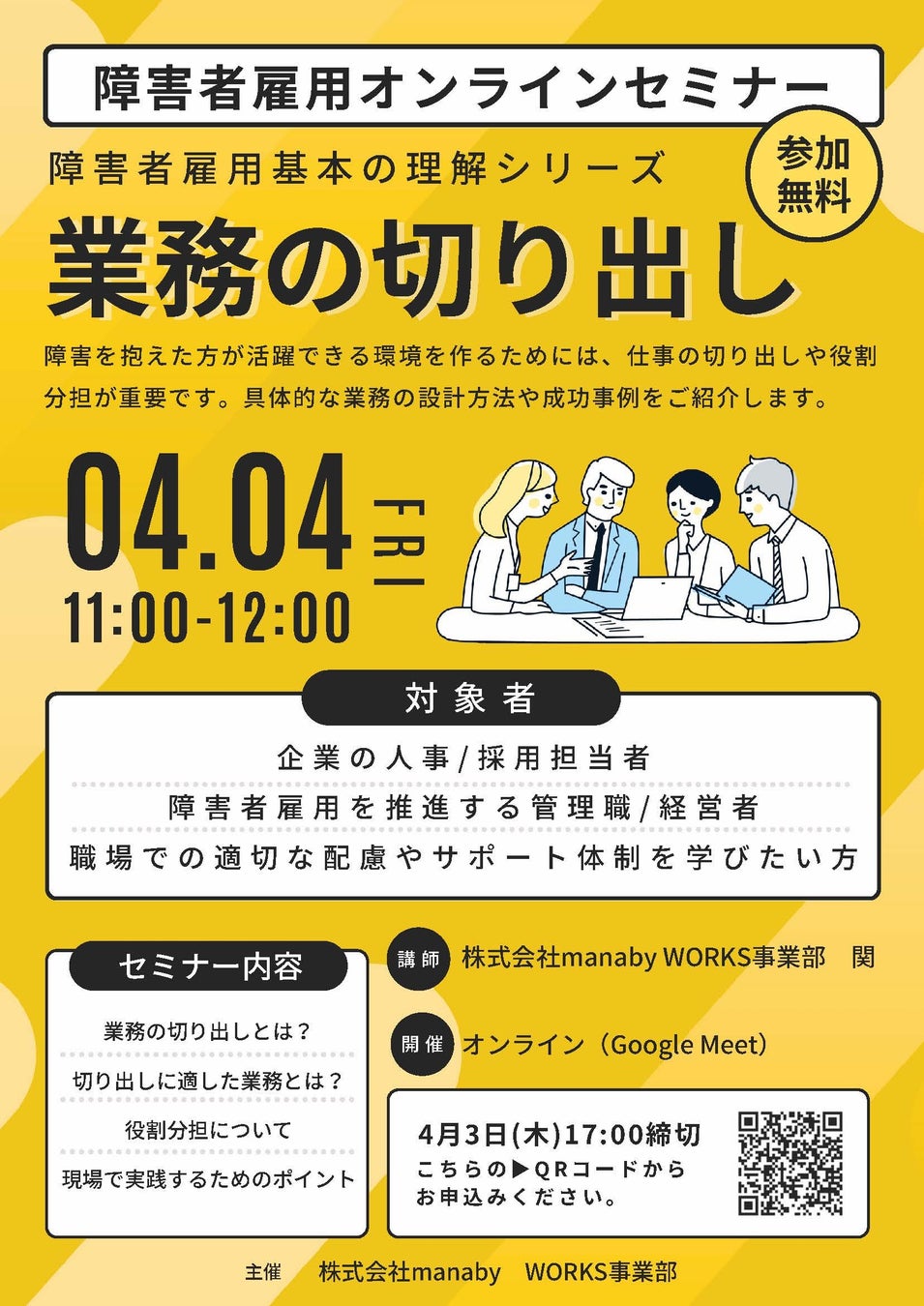 4/4(金) オンラインセミナー開催!障害者雇用の「業務の切り出し」