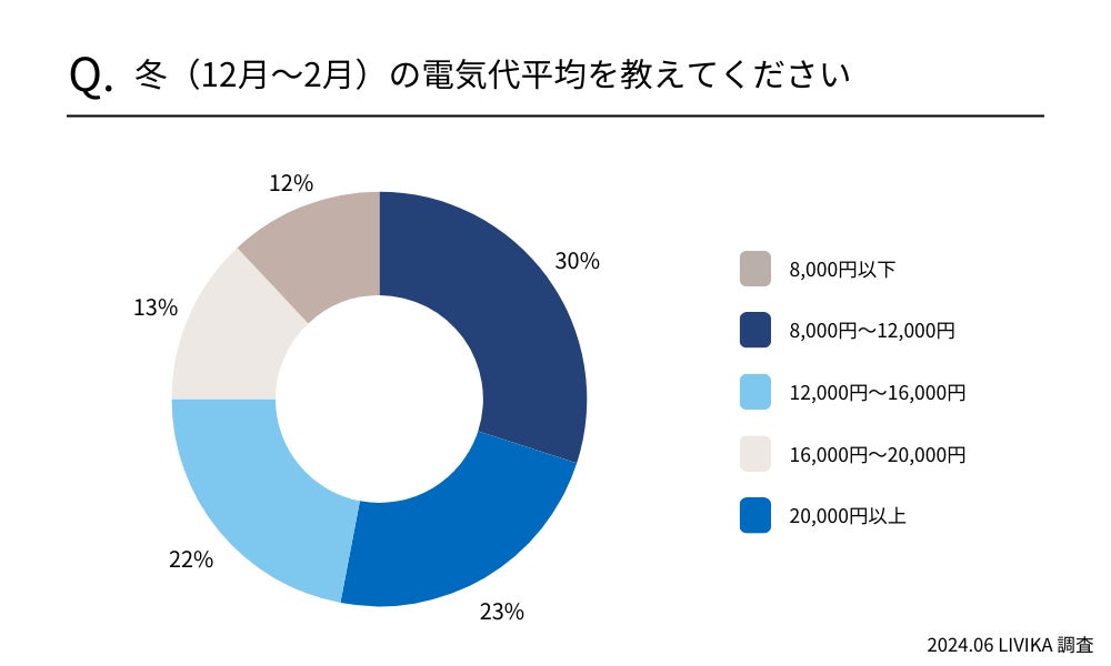 冬の電気代は「20,000円以上」と回答した方が23%と、一年間で一番多い結果となりました。