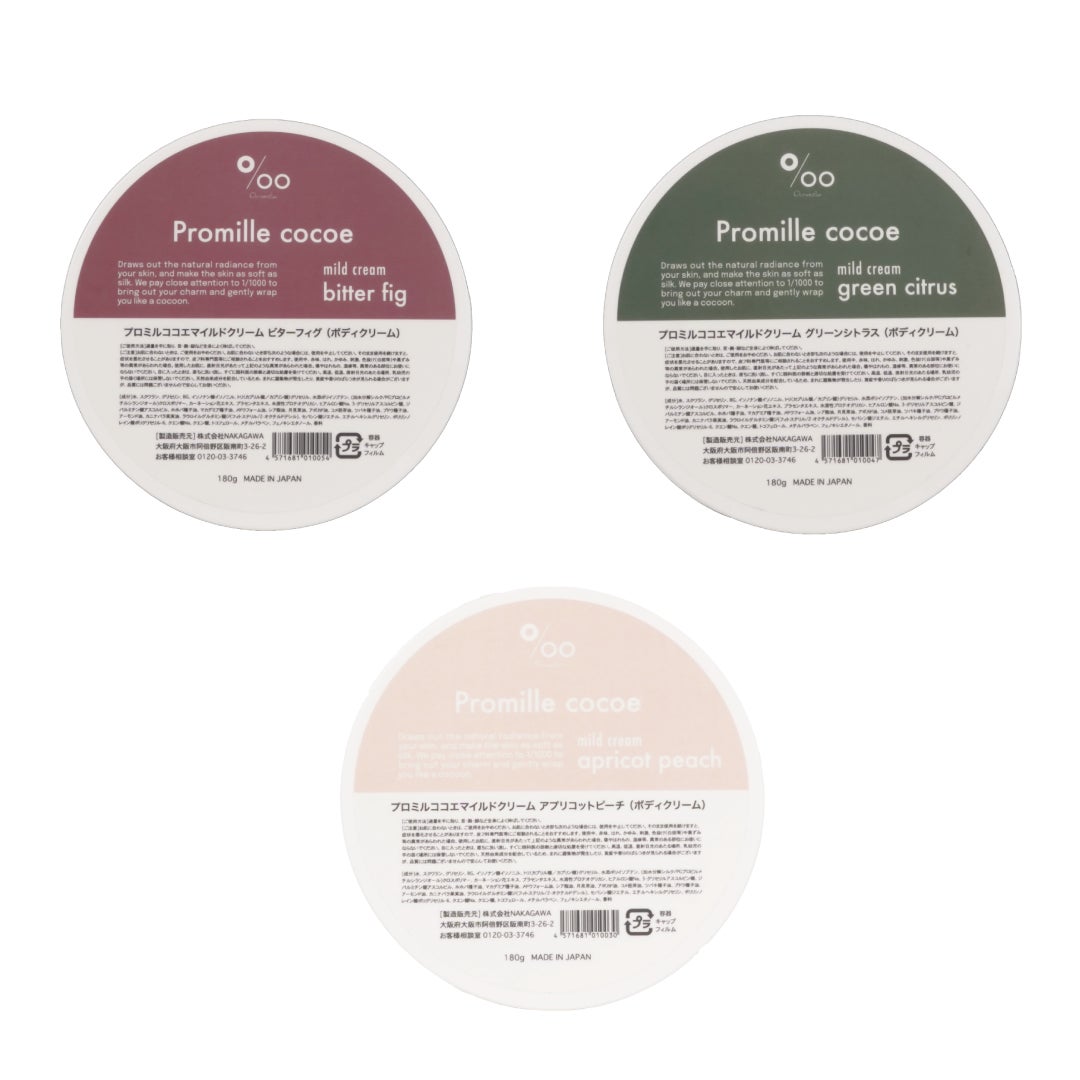 『みんなの夜のホンネ展』では、【プロミルココエ】3商品の展示と販売を実施いたします。香りは、それぞれの商品で「ビターフィグ」「アプリコットピーチ」「グリーンシトラス」の3種類をラインナップ。男女どちらでも使いやすく、気分やお好みに合わせてお選び頂くことができます。