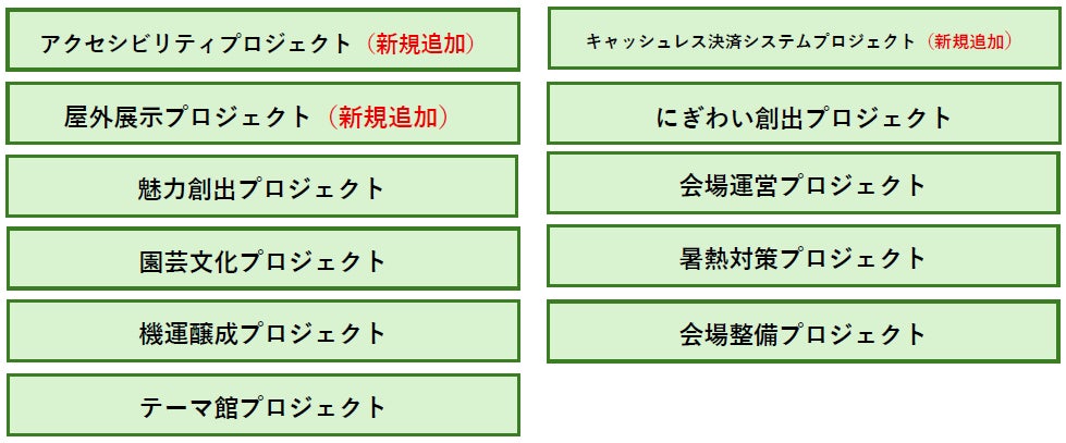 公益社団法人2027年国際園芸博覧会協会(会長: 筒井 義信、所在地:横浜市中区)は、GREEN×EXPO 2027(2027年国際園芸博覧会)における参加メニュー「プロジェクト協賛」において、新たに「アクセシビリティプロジェクト」「屋外展示プロジェクト」「キャッシュレス決済システムプロジェクト」への協賛募集を開始しました。また今後もプロジェクトを順次拡大してまいります。