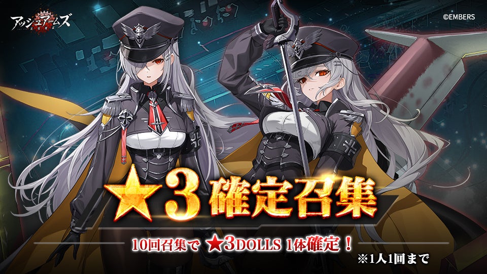 「★3 確定召集」では、10回の召集を行い、そのうち★3 DOLLSが1体以上確定で出現します。