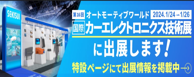 積水化学グループは、1月24日(水)〜26日(金)に東京ビッグサイトで開催される「第16回オートモーティブ ワールド」の構成展の一つである「第16回[国際]カーエレクトロニクス技術展」に出展します。(小間番号E40-8)