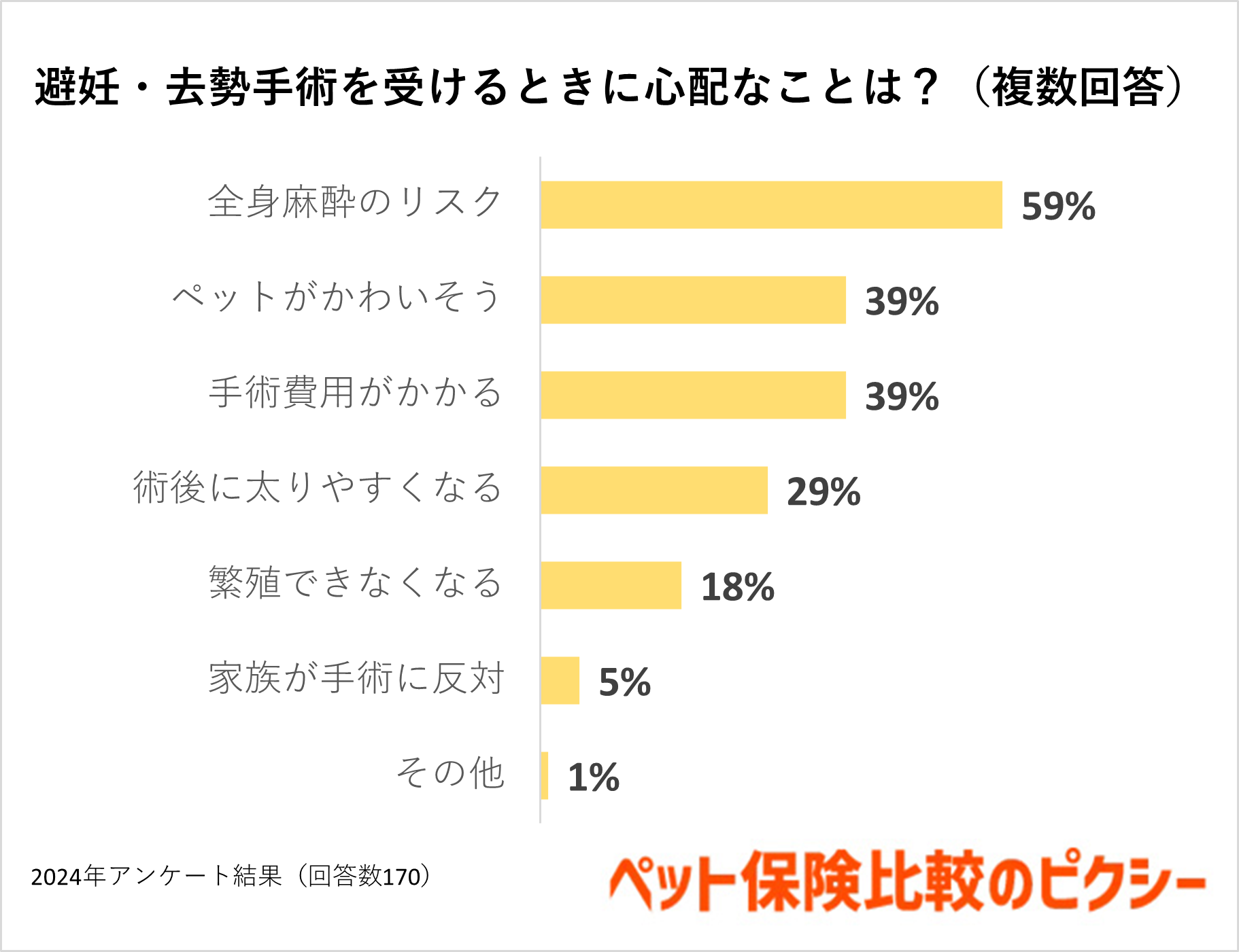 避妊・去勢手術を受けるときに心配なことの1位は「全身麻酔のリスク(59%)」でした。