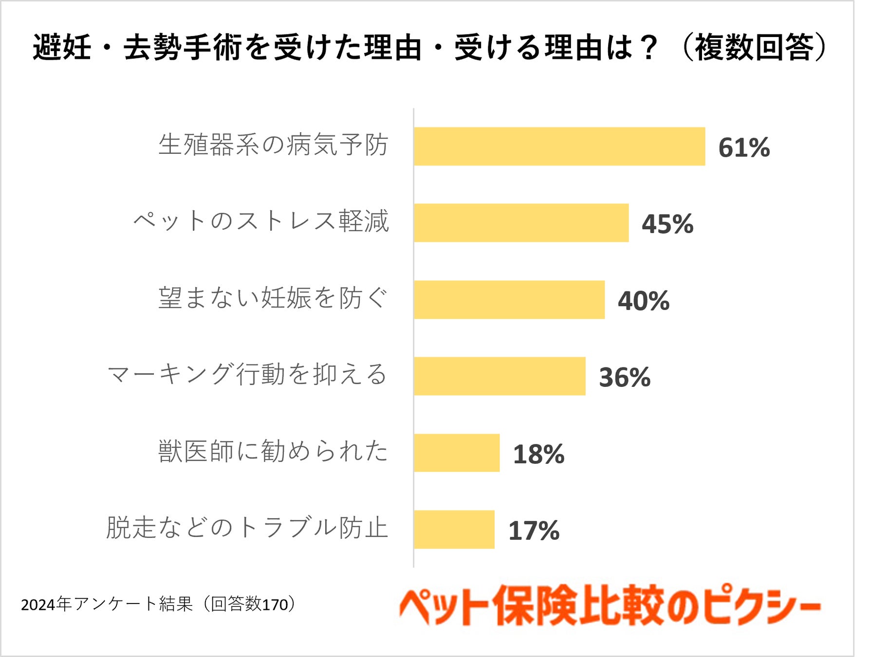 避妊・去勢手術を受ける理由の1位は「生殖器系の病気予防(61%)」でした。