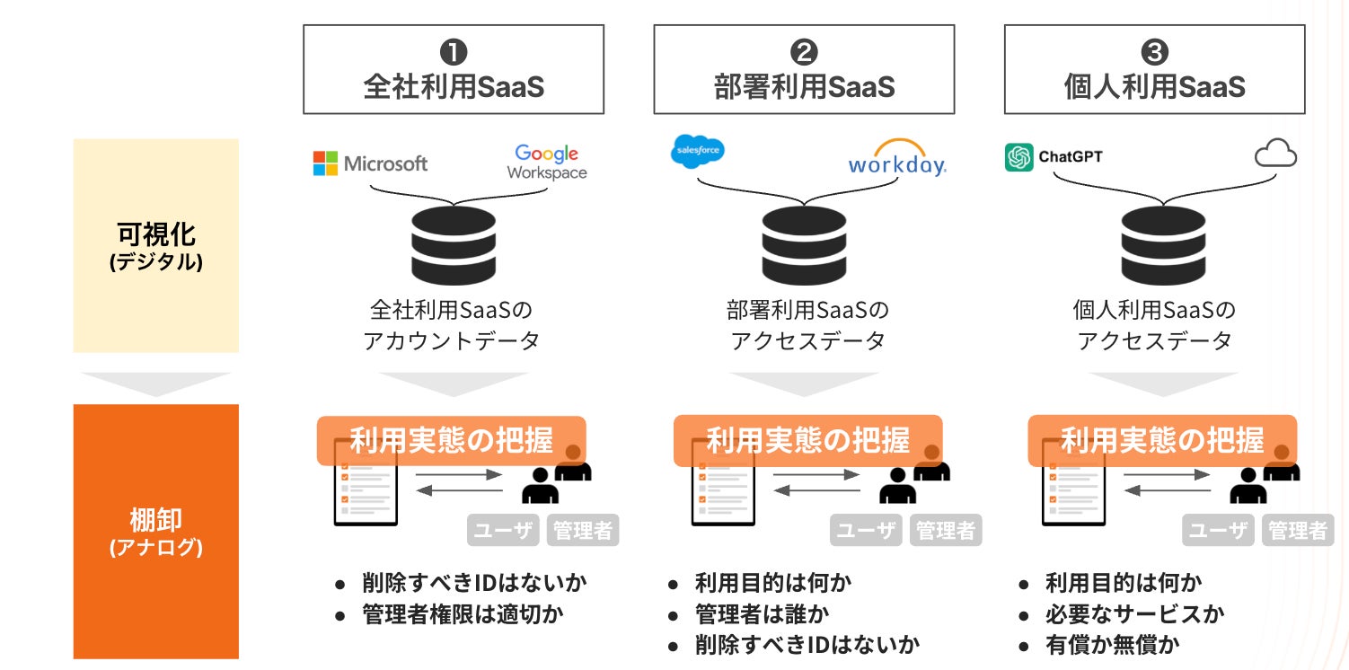 社内で使用するSaaSが増加したため、利用状況が正確に把握できておりませんでした。