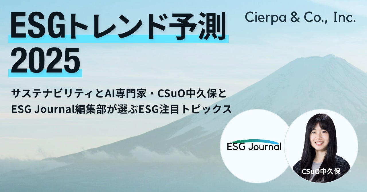 シェルパ・アンド・カンパニー株式会社(本社:東京都品川区、代表取締役CEO 杉本淳、以下シェルパ)は、サステナビリティとAI領域の専門家である取締役 CSuO(Chief Sustainability Officer)・中久保菜穂のnoteと、シェルパが運営するサステナビリティ・ESG特化メディア「ESG Journal」で、2025年のESGトレンド予測を発表しましたのでお知らせします。