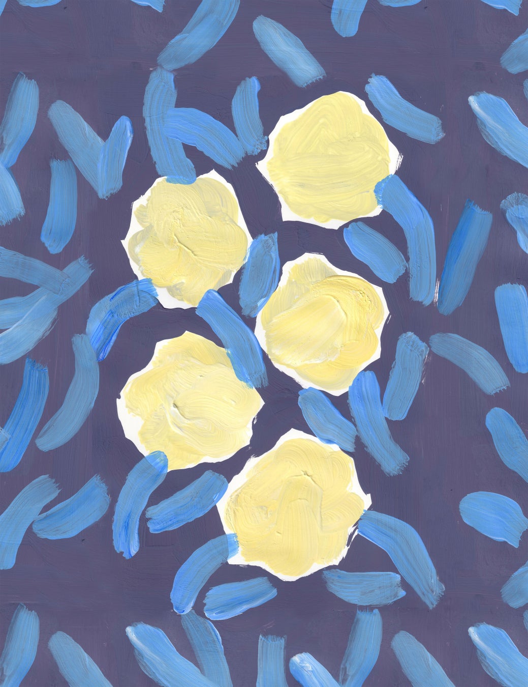アクリル絵の具やマーカー、色紙を使用し制作を行なっている。テクスチャを生かしたタッチで、植物や日用品をモチーフに描く。個展の他、アパレルアイテムへの図案提供からペインティング、ポスターイラスト制作など手掛けている。
