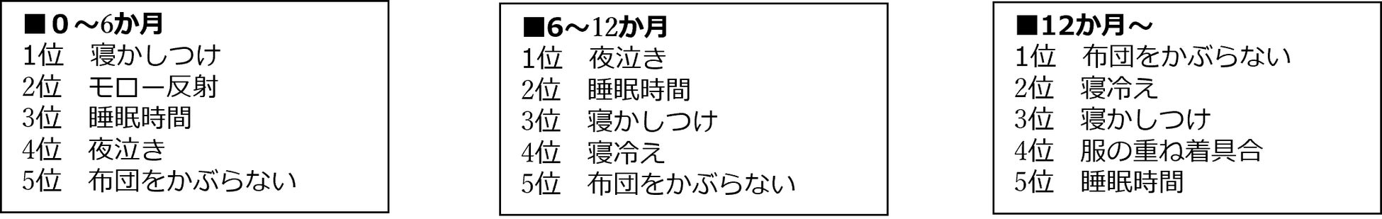 2022年12月からエルゴポーチご購入者に向けてアンケートを取らせていただいた『赤ちゃんの睡眠お悩みランキング』を集計致しました。