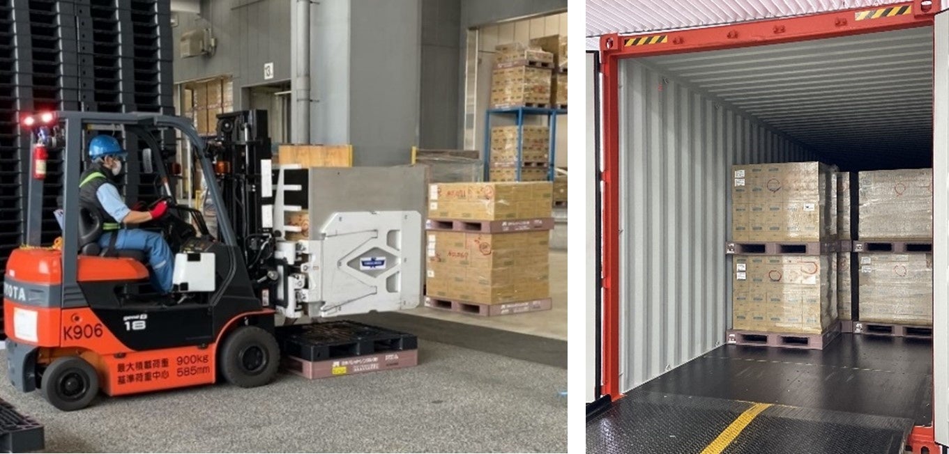 また2024年問題の解決への貢献として、ファイントゥデイの中国輸出時における海外用パレットへの製品積み替え作業が不要となり、最大5,000時間*1のトラックドライバーの荷待ち時間削減につながる可能性があります。さらにこの4社連合の取り組みによって、ファイントゥデイにおける海外用使い捨てパレットの廃棄取り止め、およびケンビューにおける日本への輸出のための空パレット事前輸送の解消を実現し、CO2排出量の削減にも貢献します。