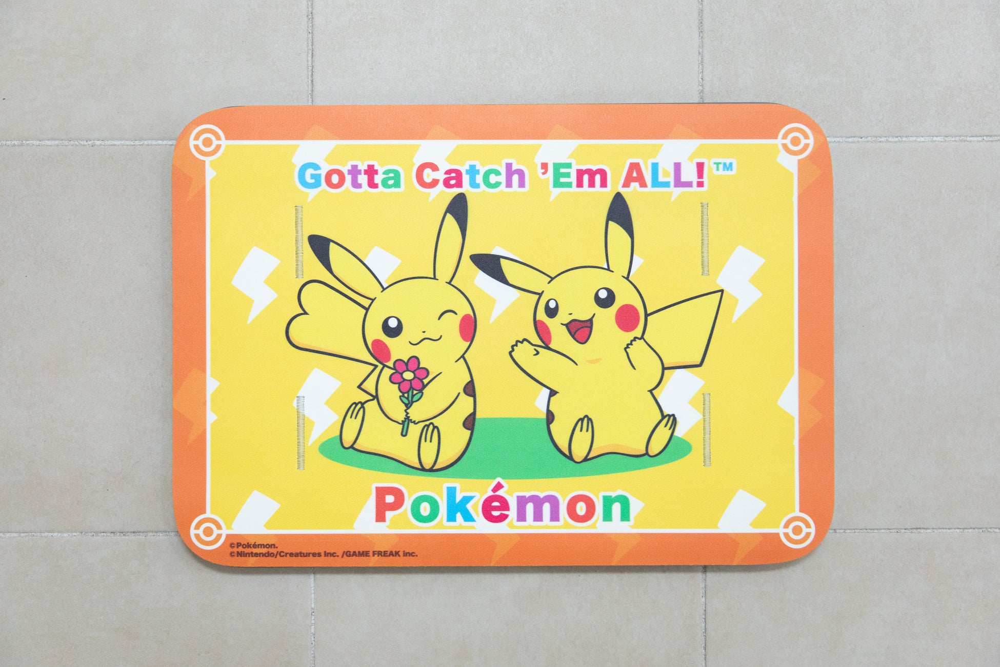 バスマットにポケモンの足跡がくっきり!二匹はついさきほどまで、ここでお風呂を楽しんでいたみたい!?自分も足跡を残せるかチャレンジです!ピカチュウとカビゴンとの暮らしは、発見がいっぱいありそうです。