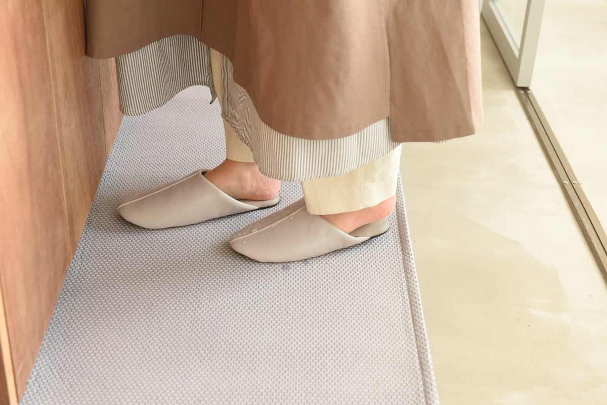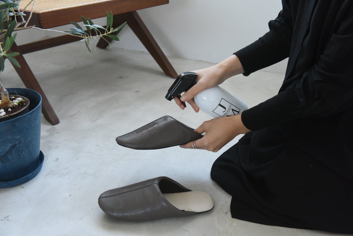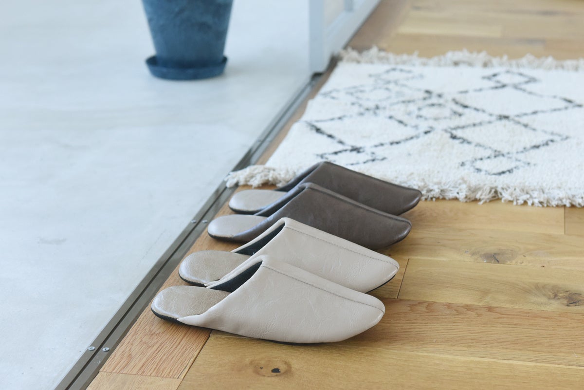 レザーに見えて、実はアルコールスプレーOK!雑菌が気になる春夏前に、「除菌スプレー対応スリッパ」に変えてみませんか?