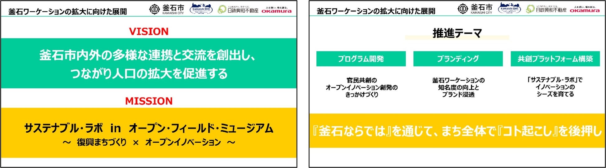 これにより日鉄興和不動産とオカムラは釜石の地方創生における貢献、また新しい働き方の研究を釜石市とともに推進してまいります。