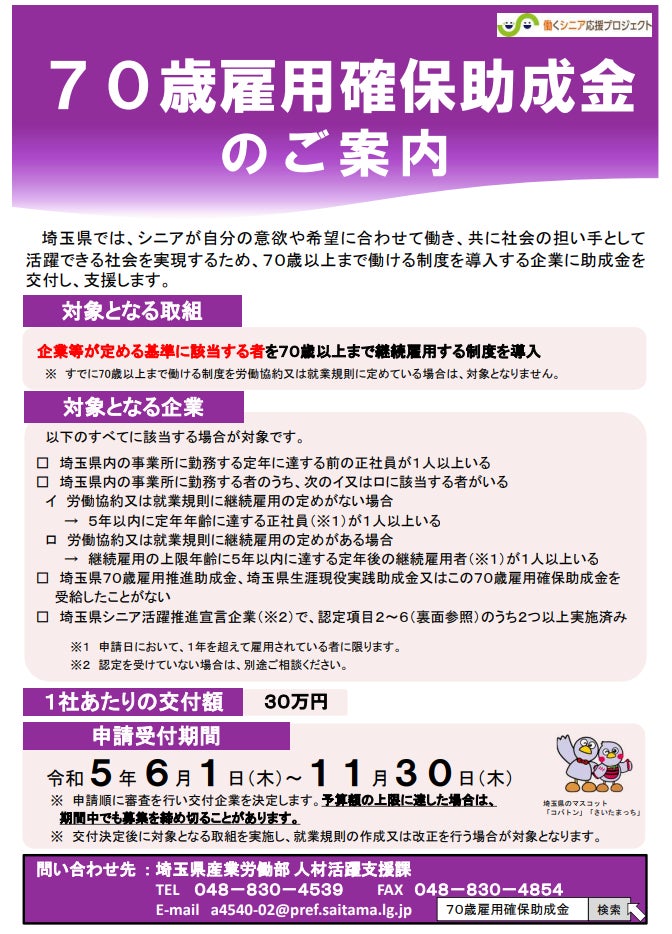 【埼玉県】シニアが活躍できる企業を埼玉県が支援!