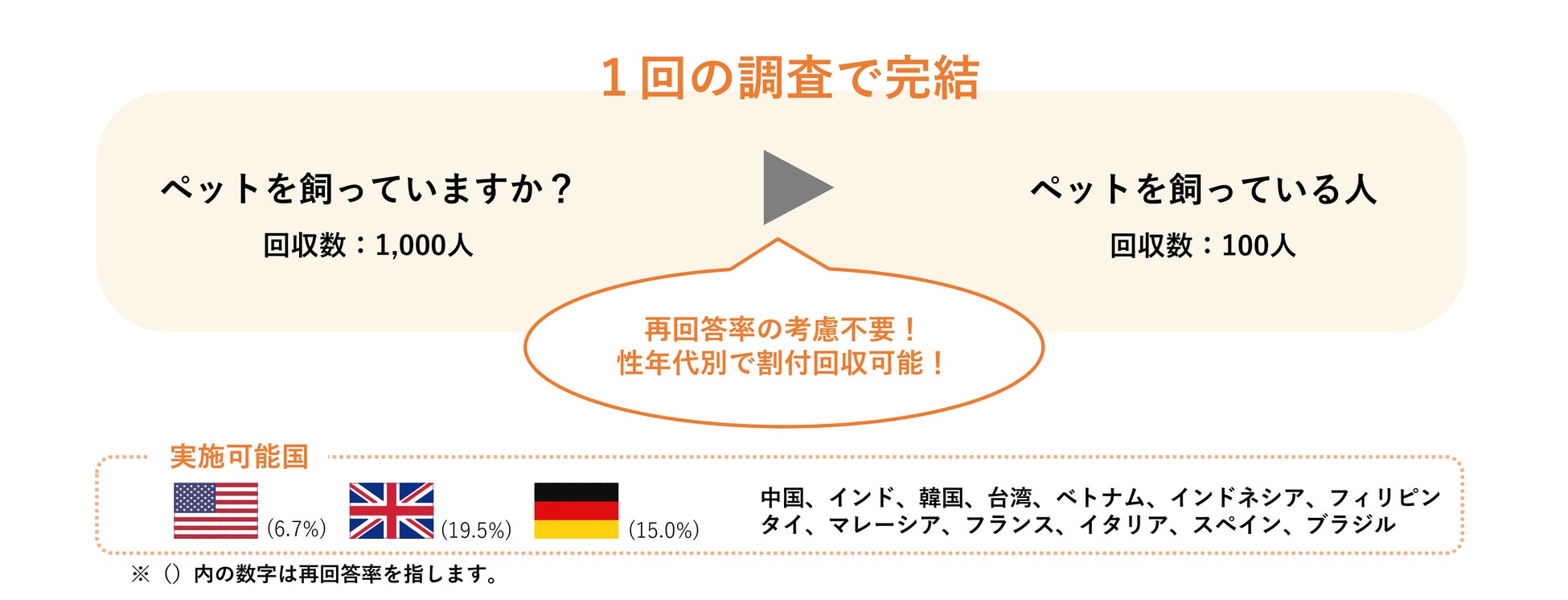 を掛け合わせた割付を行った上で本調査を実施できるため、従来課題となっていた再回答率を考慮することなく、設計通りのサンプル数を安定して回収することができます。
