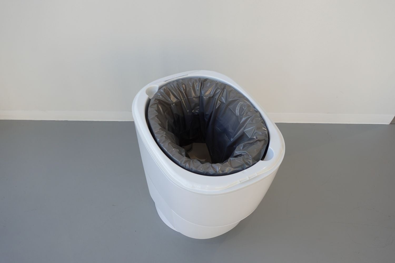 本体内部にセットしたロール状のフィルムライナー(密閉式パック)で使用毎に自動密閉パックし、ボタンひとつで簡単に処理できるため、とても衛生的。災害時や屋外の使用時であっても、日常と変わらない水洗トイレに近いデザインで落ち着く時間を過ごせるのも大きなポイントです。