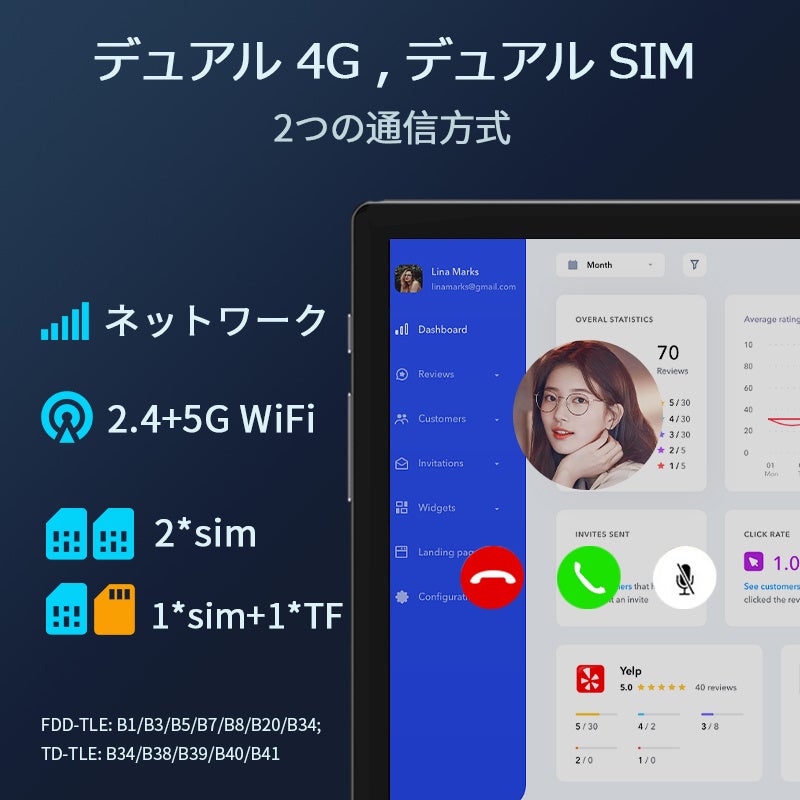| SIM対応 | ◯ FDD-TLE: B1/B3/B5/B7/B8/B20/B34; TD-TLE: B34/B38/B39/B40/B41 |