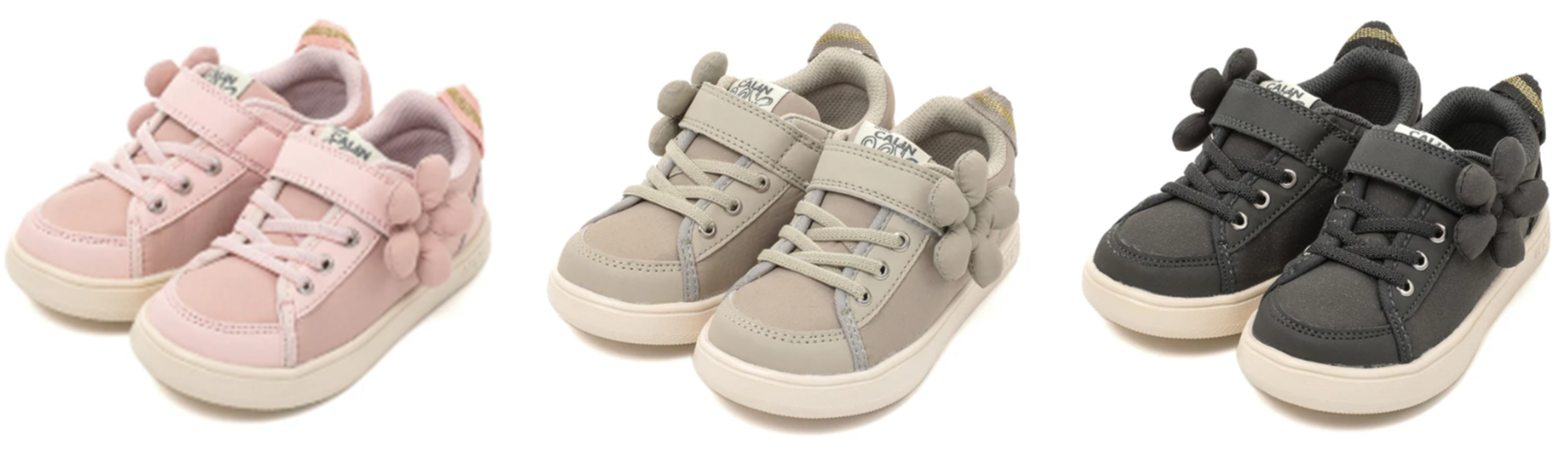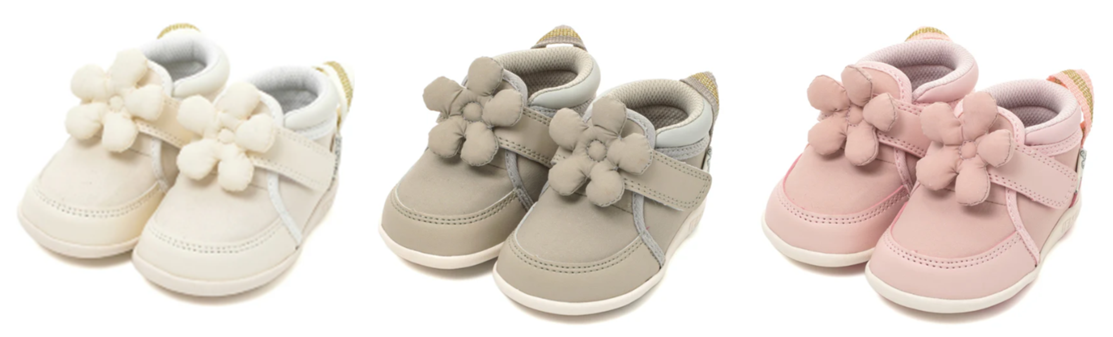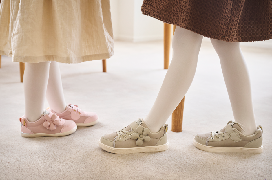 「ifme CALIN wild flower series ビッグフラワースニーカー」は、“日常で見つかる野生のお花”をテーマに、水彩画家の一栁綾乃さんが描くイラストをもとにデザインした「wild flower series」の秋冬モデルです。“初恋”や“真実の愛”を花言葉に持つ、秋の花「キンモクセイ」のモチーフを施しました。綿を入れて優しい手触りに仕上げた立体的なモチーフが、より一層目を引く特徴的なデザインになっています。ピンク・グレー・ブラック(ファーストシューズはホワイト)のカラーバリエーションに、サイズもファーストシューズ・ベビー・キッズと豊富に展開しています。