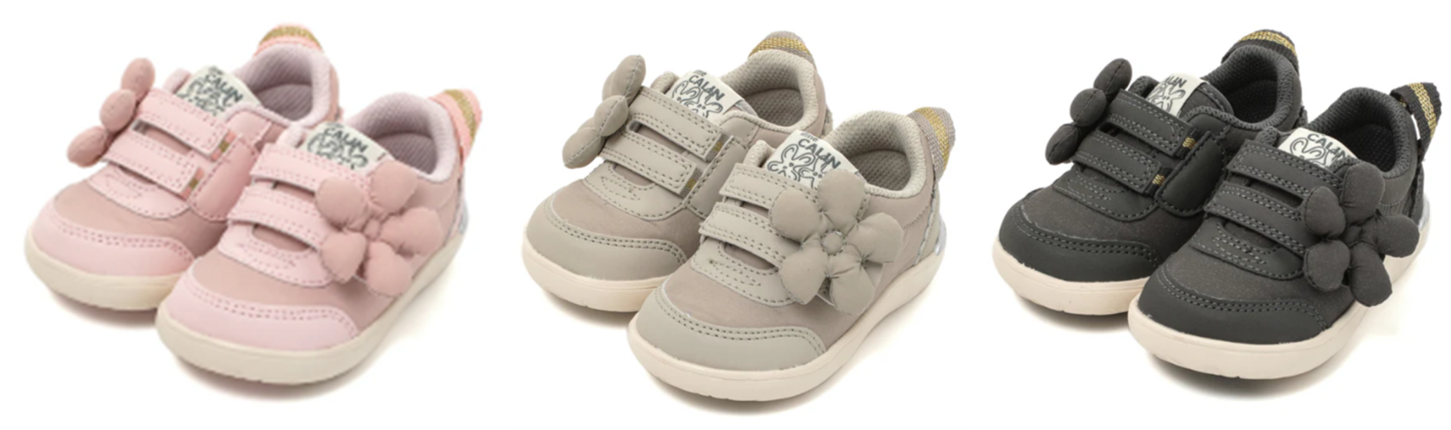 「ifme CALIN」は、「かわいいをシェアする」をコンセプトに、ママと女の子が共に“かわいい”と思えるデザインを取り揃えています。花柄模様や、ベルト部分に一際目を引く大きなモチーフをあしらうなど、ポップでキュートなデザインが人気のブランドです。ファーストシューズ・ベビーサイズ・キッズサイズまで展開があり、その愛くるしいシューズたちはSNSでも注目を集めています。