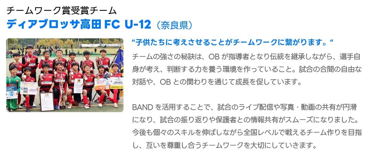 これまでBANDは、全国トップレベルのチームから、成長が期待されるチームまで、保護者、監督など多様なグループリーダーのために、無料オンラインセミナーや大会スポンサーシップなど、チーム運営をサポートするさまざまな活動を行ってきました。BANDは「ただの連絡ツール」にとどまらず、夢に向かって努力するチームや選手たちの成長の場を応援したいと考えています。