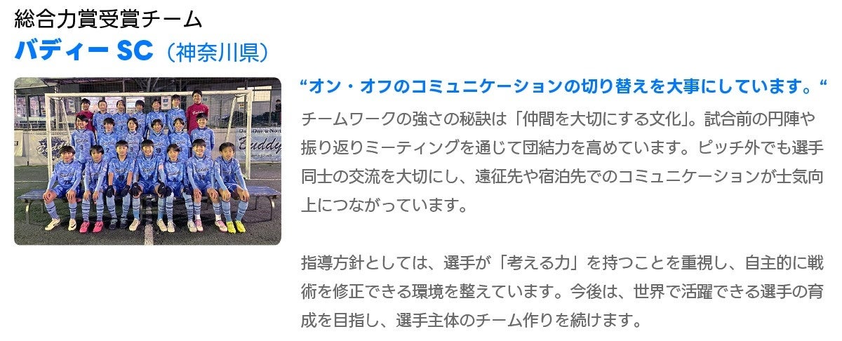 攻守両面でバランスの取れた力を発揮し、総合的な強さを示したチームに贈られます。技術力と戦略性が調和したチームが受賞しました。