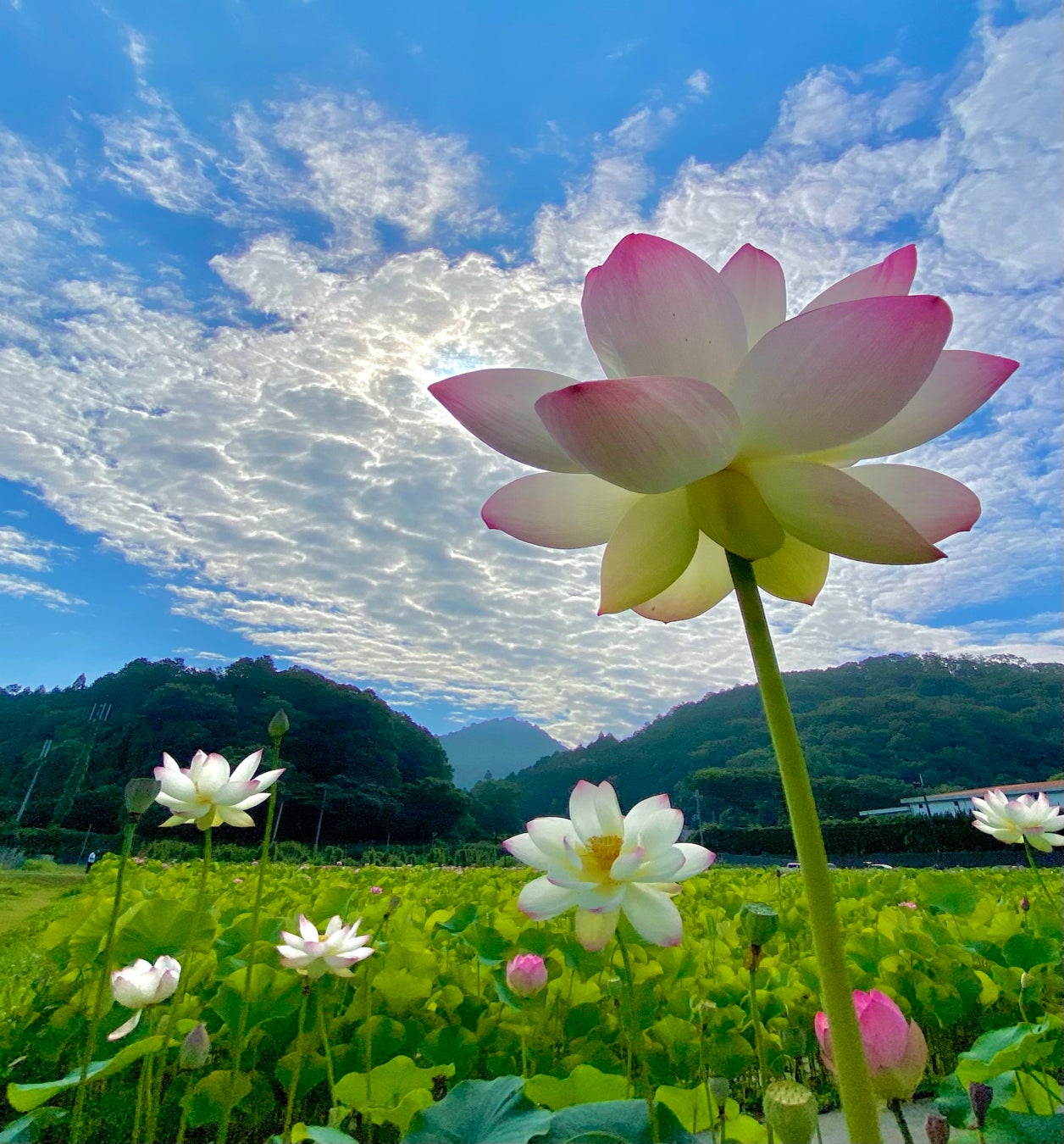 この蓮畑の見どころは、早朝の美しい光の中で花が開く瞬間です。朝の涼しい時間帯に訪れると、しっとりとした雰囲気の中で蓮の花を楽しむことができます。また、蓮畑の周辺には散策路が整備されており、ゆっくりと散歩しながら花を鑑賞するのもおすすめです。