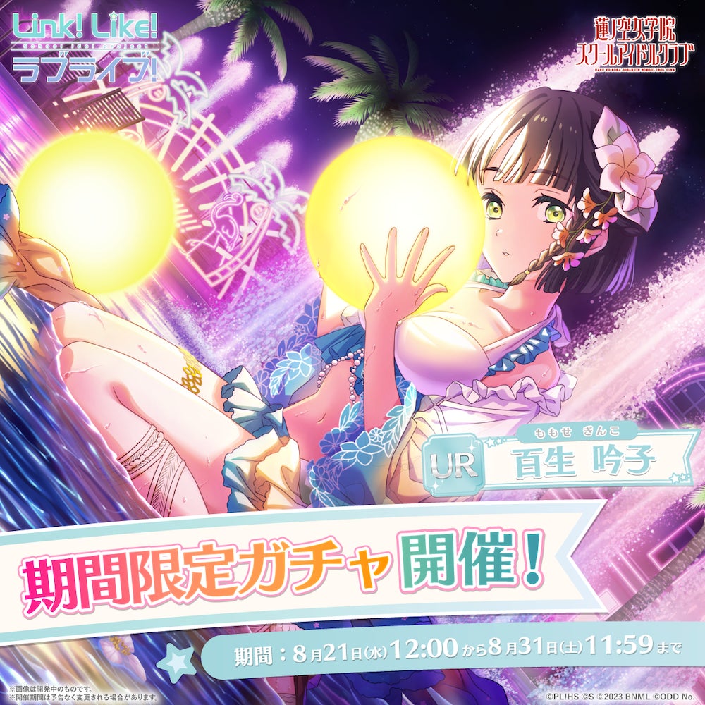 株式会社オッドナンバー(代表取締役社長:丸茂 雄大)は、株式会社バンダイナムコフィルムワークス(代表取締役社長:浅沼 誠)、株式会社バンダイナムコミュージックライブ(代表取締役社長:垰 義孝)と共同開発するスマートフォンアプリ「Link!Like!ラブライブ!」(以下、「リンクラ」)において、2024年8月21日(水)より「104期 SUMMER」シーズンの新ガチャ第八弾となる2024 SUMMER LIMITED COLLECTION Vol.8 ガチャの開催と、2024年8月21日(水)より蓮ノ空女学院スクールアイドルクラブによるラブライブ!シリーズとのコラボ企画[第四弾]の実施についてお知らせいたします。