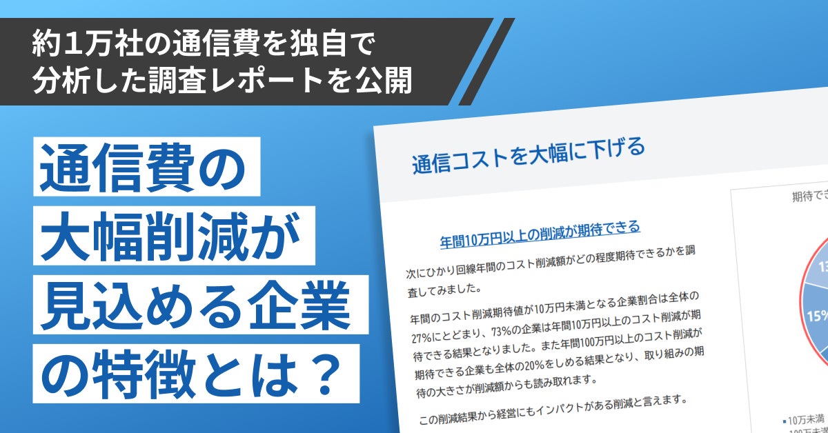 株式会社インボイス(代表取締役:加茂 正巳 本社:東京都千代田区)は、約10,000社の通信費を分析し、ひかり電話で大幅なコスト削減可能な企業の特徴に関するレポートを公開しましたのでお知らせいたします。