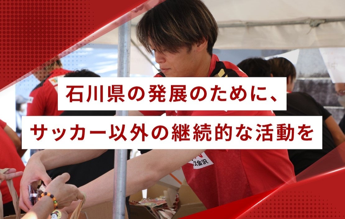 2024 年元日の能登半島地震や豪雨災害は、甚大な被害を及ぼしました。地元のサッカー クラブとして、義援金募金活動や泥かき、支援物資の配布、サッカー教室やホームゲーム 試合への招待など、様々な活動を実施しました。石川県にあるクラブだからこそできることをこれからも継続していきたいと思っています。また、被災地だけでなく、地域のイベ ント参加、Future Challenge Project のような障害者の方との触れ合いなど、石川県になくてはならない存在として皆さまと共に歩んでまいります。