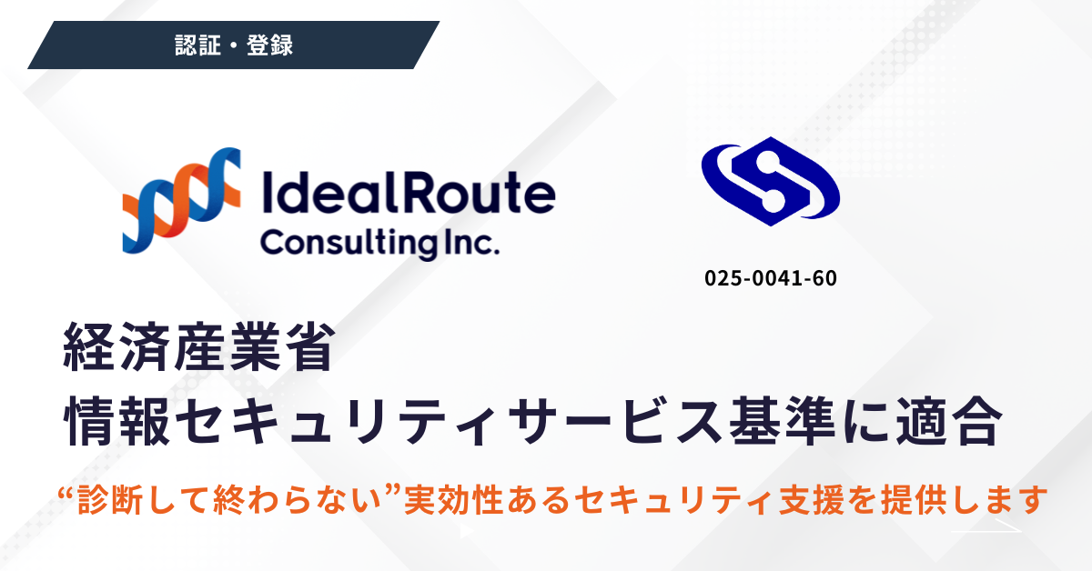 アイディルートコンサルティング株式会社(本社:東京都千代田区、代表取締役:石川 耕、以下:当社)は、提供する脆弱性診断サービスが、経済産業省の定める「情報セキュリティサービス基準」に適合し、登録サービスとして認められたことをお知らせします。