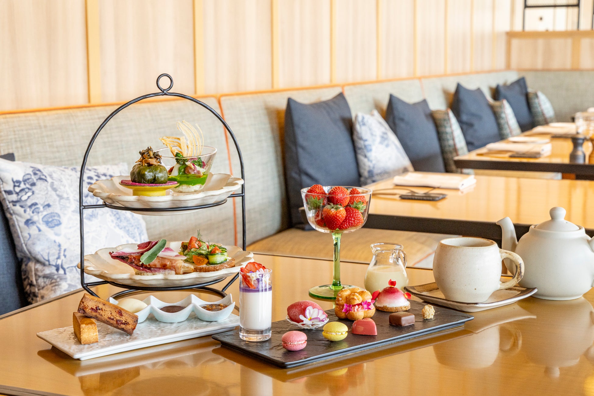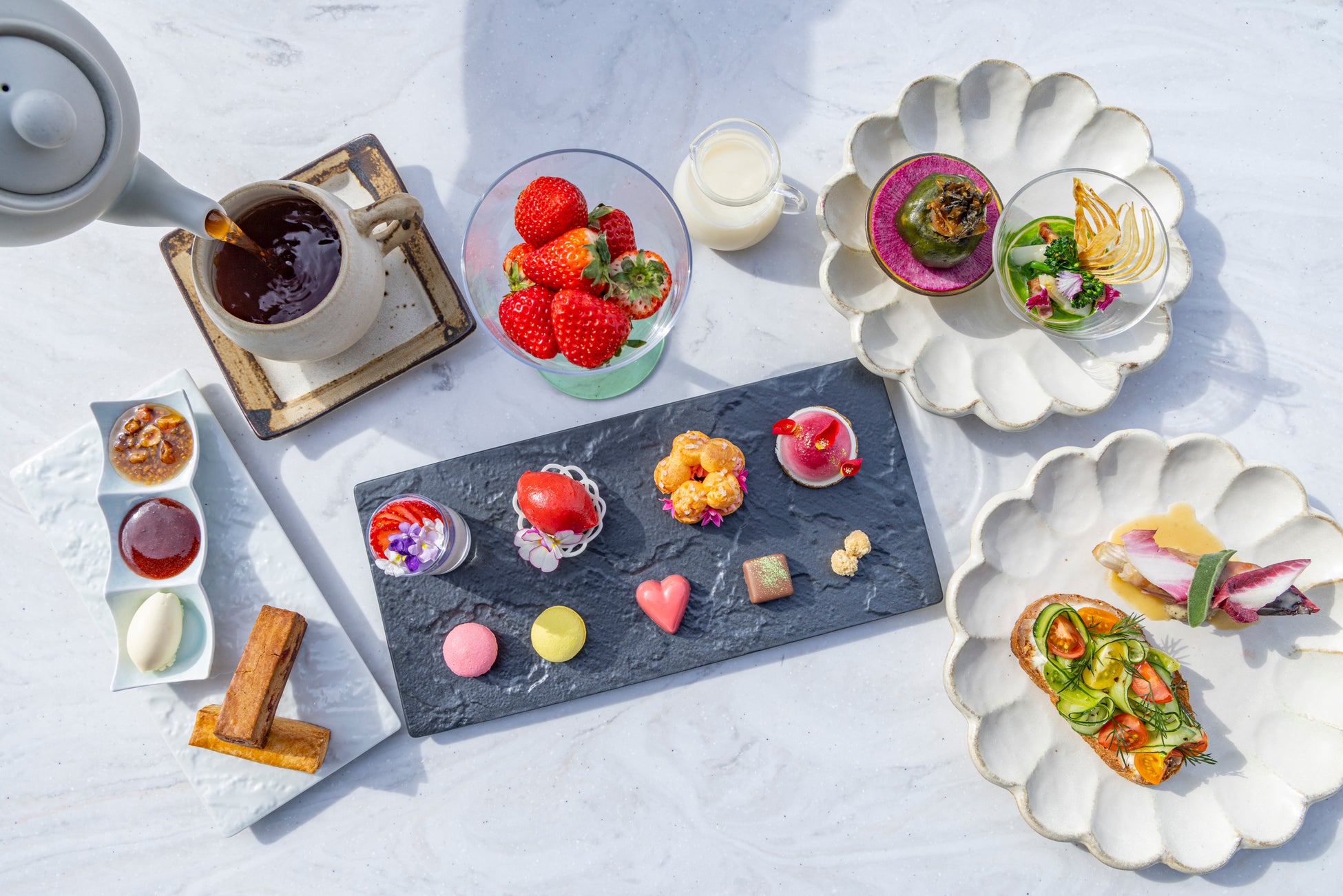 さらに、器には岐阜県の美濃焼を採用し、繊細で温もりある質感が彩りを一層引き立て、日常から少し離れた上質な午後のひとときへと誘います。