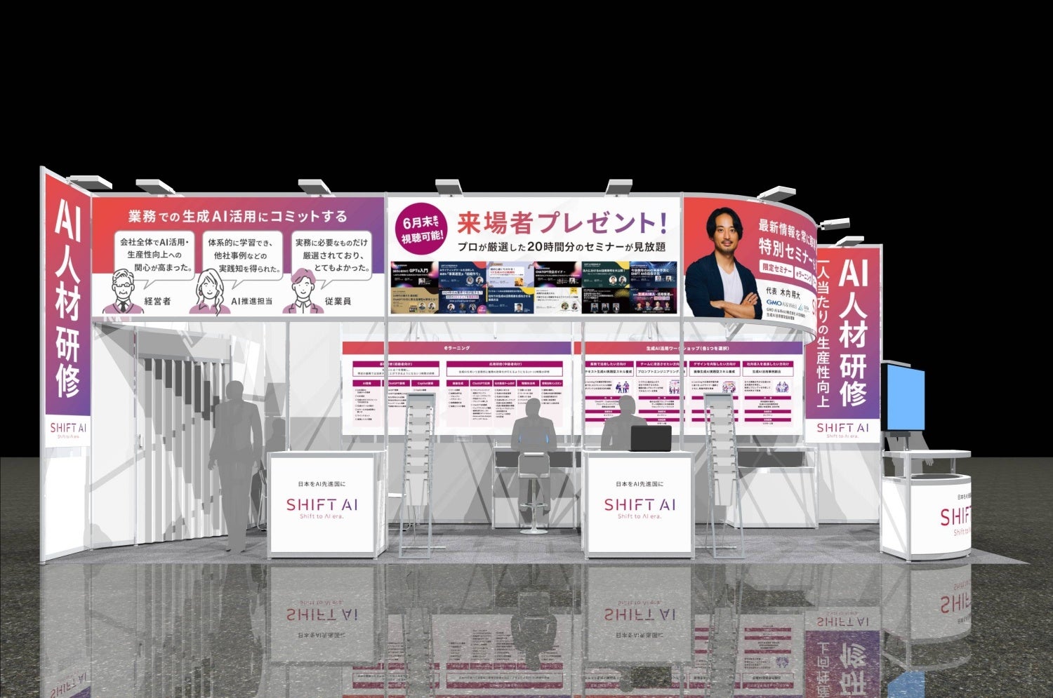 業務での生成AI活用にコミットする、研修~導入までをカバーした法人向け生成AI人材育成サービスである、「生成AI人材育成研修」についてのブースを出展いたします。