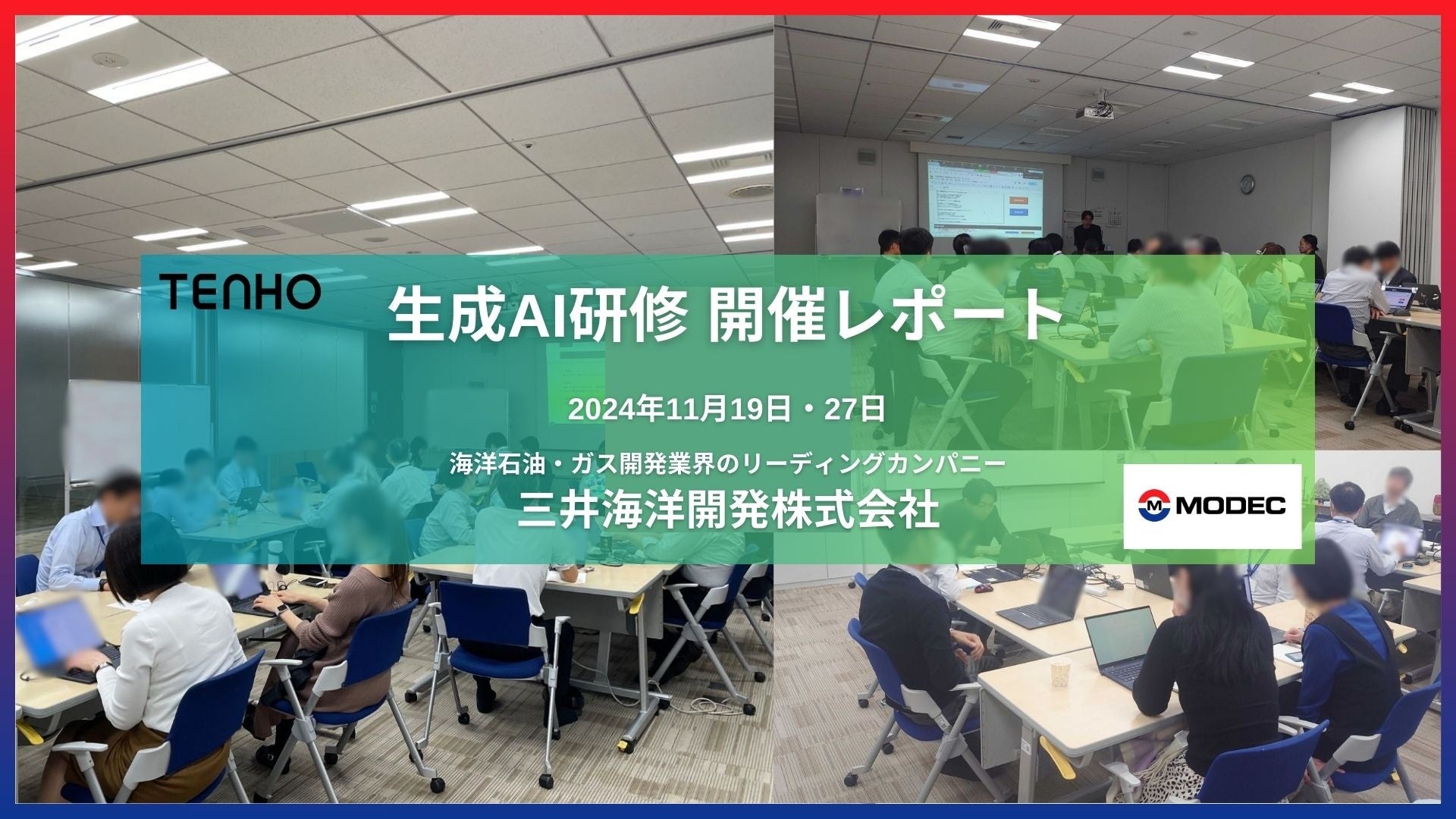 生成AIに関する研修事業を展開する株式会社TENHO(本社:東京都渋谷区、代表取締役:田村 允)は、海洋石油・ガス開発業界のリーディングカンパニーである三井海洋開発株式会社(本社:東京都中央区、代表取締役社長:宮田 裕彦)において、社内業務に特化するため独自環境で構築された生成AIツール「MODEC sensei」を用いた生成AI業務活用ワークショップを開催しましたので、お知らせいたします。