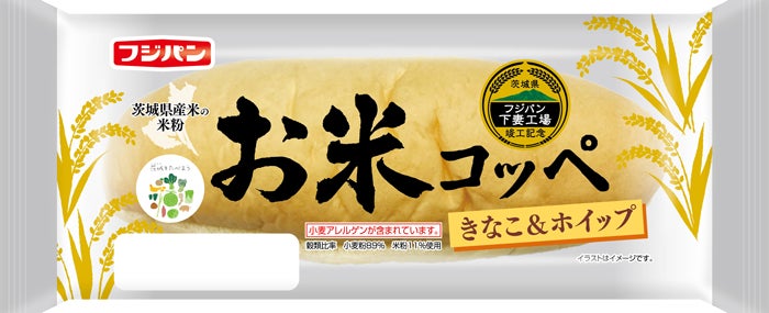 茨城県産米粉を11%使用。ほのかな甘みにやわらかでもっちりとした食感が特徴のコッペパンです。