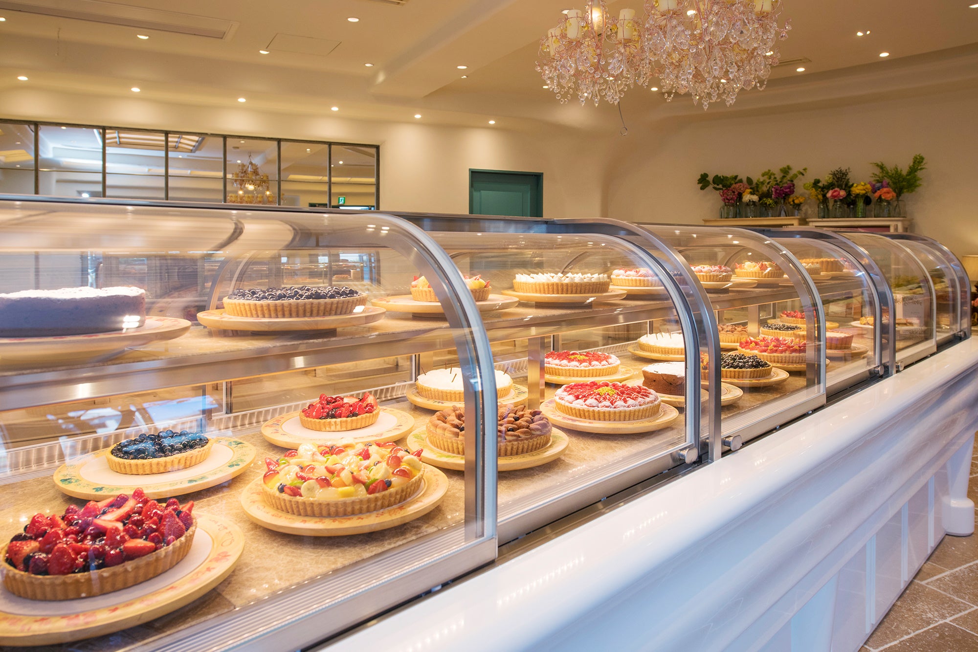 店内中央に設置した大きなショーケースには、彩り豊かなタルトが常時20種類ほど並びます。店名の「キル フェ ボン」は、フランス語で“なんていい陽気なんだろう”という意味です。