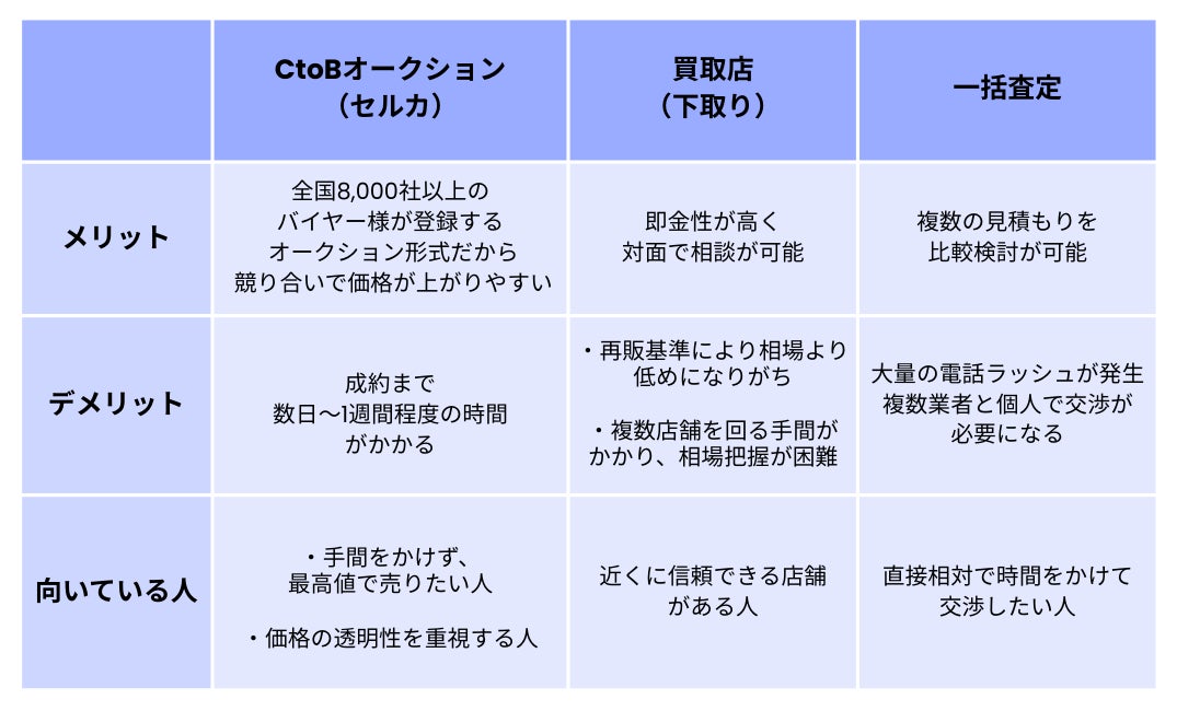 現在、中古車を売却する際の主な選択肢は以下の3つに集約されます。
